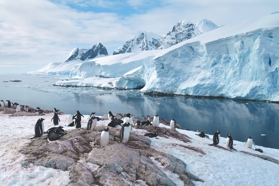 Sail through iconic Antarctic landscapes like the Gerlache Strait, surrounded by ice cliffs, snow-covered peaks, and breath taking polar vistas.