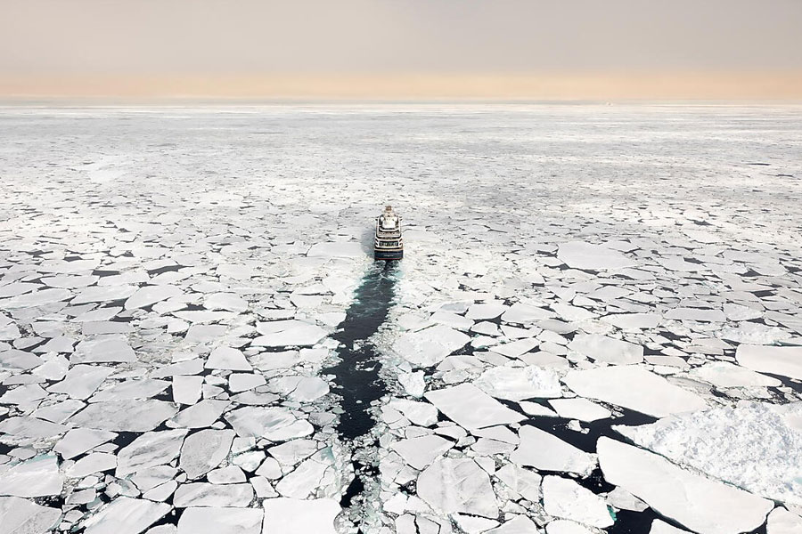 Sail through pack ice and ice floes aboard Le Commandant Charcot, a polar exploration vessel, in search of the Geographic North Pole, just like the great explorers.