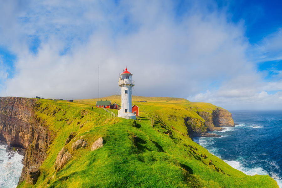 Vágur is the largest town of Suðuroy, the southernmost of the Faroe Islands. Treeless, windswept and rarely visited, the Faroe Islands were first discovered by Norse settlers around the year 750AD (although archaeological evidence hints at earlier settlement, perhaps from Scotland). Isolated from the rest of the Norse world, the Faroe Islands have retained a unique language and culture directly descended from the Ancient Norse. Although Vágur is a modern town with several well known art galleries and workshops, the jaw-dropping clifftop vistas have remained the same since the age of Viking exploration.