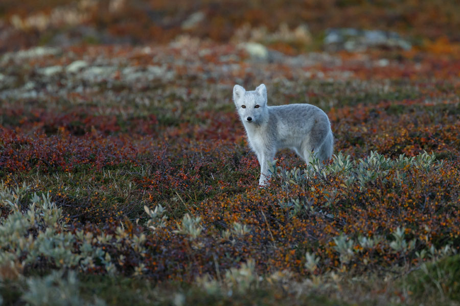 Watch arctic fox hunt beneath towering cliffs that are home to enormous colonies of guillemots and fulmars