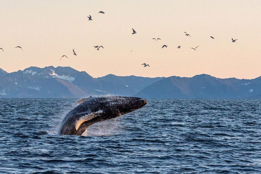 Spot fascinating wildlife, from majestic bears and reindeer to magnificent blue whales, minke whales, and orcas.