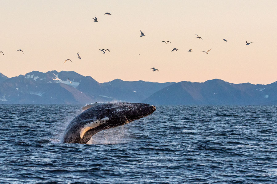 Embark on an incredible opportunity on this 14-day journey beyond the Arctic Circle, exploring the frozen landscapes of Spitsbergen, the isolated volcanic island of Jan Mayen, Greenland, and Iceland. As you sail from Longyearbyen, you'll witness the stunning beauty of glaciers, fjords, and snow-covered peaks, all while observing the rich wildlife, including Arctic birds, seals, reindeer, and the elusive polar bear. On the east coast of Greenland, you'll visit the Inuit community in Ittoqqortoormiit and explore Scoresby Sound's vast fjord network, home to musk oxen, Arctic wolves, and migratory birds. Throughout, a team of naturalists will enhance your experience with wildlife sightings and insights into the region's fragile ecosystem.